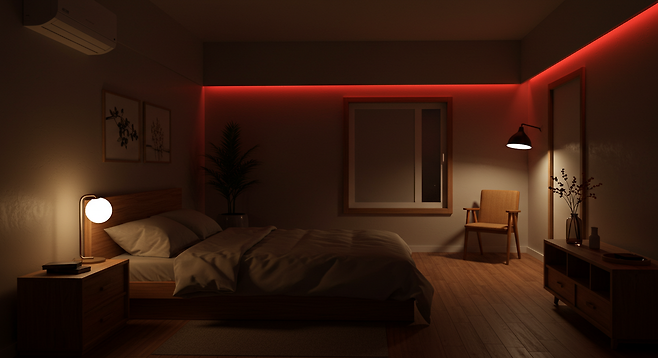특히 침실에 붉은 계열의 간접조명이 과하게 설치된 경우, 심리적 불안을 유도할 수 있으며 가족 간의 관계에도 부정적인 영향을 미칠 수 있습니다.