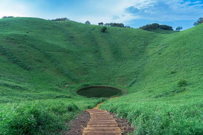 강원도 정선에 위치한 민둥산은 가을이면 황금 억새 물결이 장관을 이루지만, 여름에는 푸른 초원이 안겨주는 싱그러움의 매력을 느낄 수 있습니다.