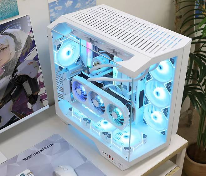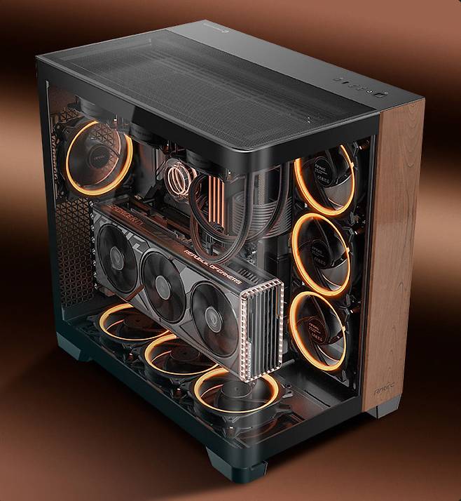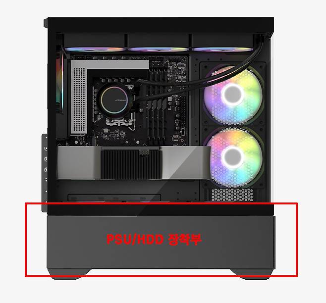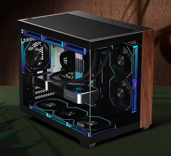 이처럼 듀얼 챔버 구조는 LED 발광 포인트를 자연스럽게 분산시켜 다양한 분위기로 연출할 수 있으며, 파워 서플라이가 위치한 보조 챔버 덕분에 선정리도 훨씬 수월해진다. 하지만 물리적으로 챔버가 하나 더 추가된 만큼, 케이스 전체 부피가 커지는 것은 피할 수 없는 숙명이다. 또한 넓어진 내부 공간을 충분히 활용하려면 쿨링팬 등의 추가 구성품이 필요해, 그에 따른 비용 부담도 존재한다. 그럼에도 불구하고 PC 케이스에 제대로 투자해 ‘눈에 보이는 만족감’을 얻고 싶은 사용자라면, 듀얼 챔버 어항형 케이스는 충분히 매력적인 선택이 될 수 있다.