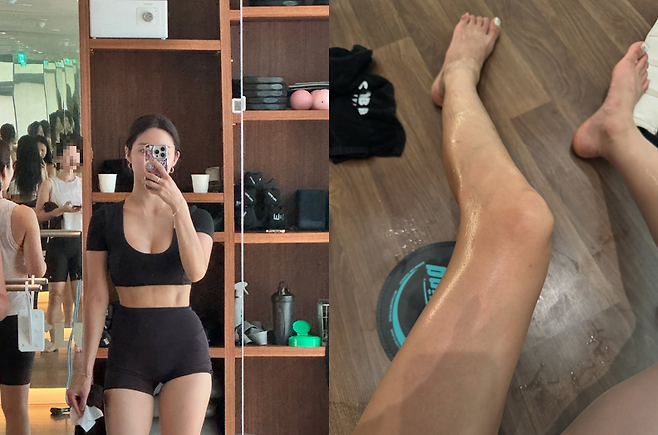운동 직후 땀에 젖은 다리까지 가감 없이 공개해 솔직한 매력을 더했다.