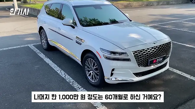 제네시스 GV80 차량을 제가 신차로 구매했고, 60개월 할부를 했는데 거기에 제가 아마 6,000만 원을 선수금으로 걸었던 걸로 기억하고 있습니다. 거기에 와이프가 조금 더 중도 상환을 해서, 들어보니까 한 달에 10만 원도 안 나가는 걸로 알고 있습니다. 기름값은 10리터를 넣으면 90km 조금 넘게 가는 걸로 알고 있습니다. 한 2만 원 정도 들어가는 거 같습니다.