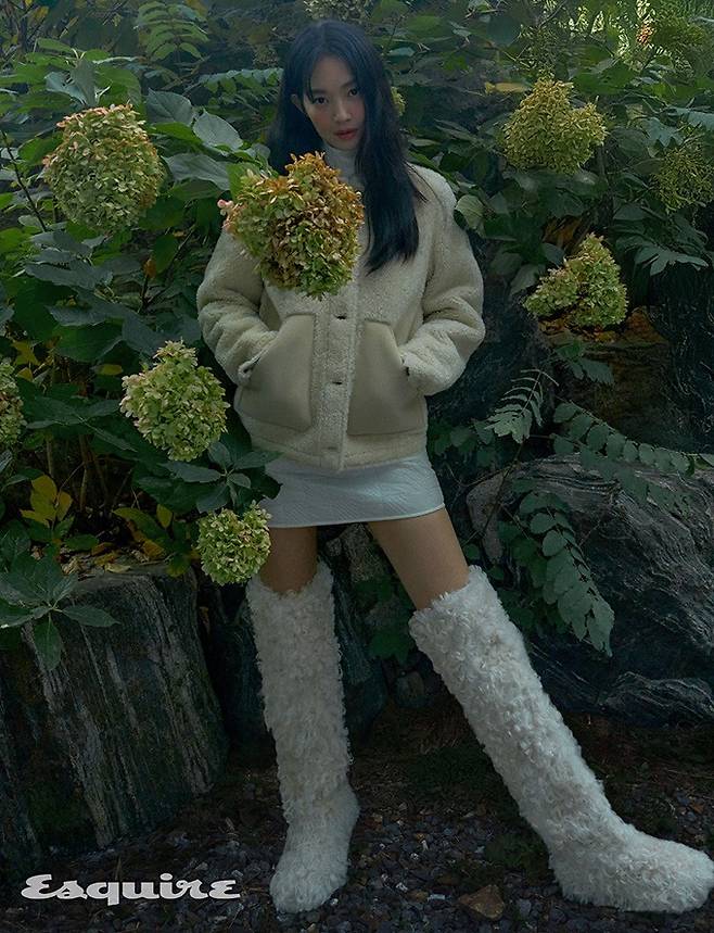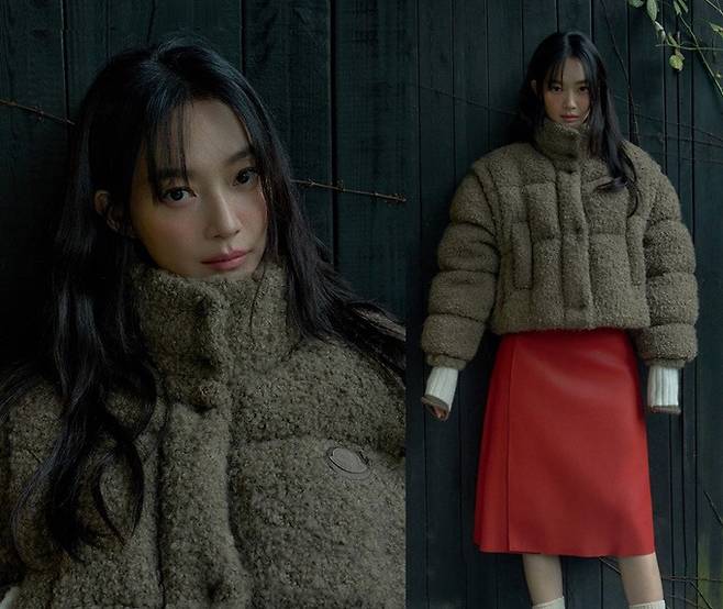 그녀는 화보 속에서 몽클레르(Moncler Collection) 2024 가을/겨울 컬렉션의 다운 재킷과 니트 모자, 양털 부츠 등을 스타일링한 포근한 위터룩을 완벽하게 소화했다.