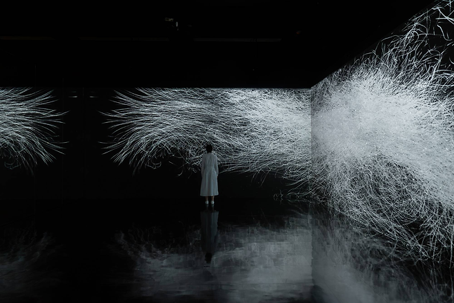 그렇지 않아요. 그들의 독특한 예술 뒤에는 첨단 기술보다도 더 정교하고 세심한 메시지가 있어요. 이노코 도시유키 팀랩 대표는 ‘디지털 기술은 예술의 표현을 자유롭게 바꾼다’고 말해요. 관객의 존재와 행동으로 작품은 살아숨쉬는 유기체가 되어 변화한다는 뜻이죠. 이는 예술과 사람의 경계를 흐리게 하고, 나아가 우리에게 익숙했던 모든 경계에 대해 다시 생각하도록 만들어요. 당연하게 여겼던 것들에 대해 자문하도록 하면서요.