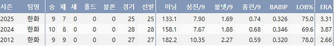 이번 시즌 한화 선발진(폰세-와이스-문동주 포함)과 함께 선발 50승 이상을 합작, 리그 최강 마운드를 구축했다.