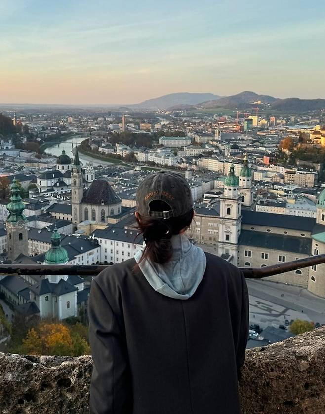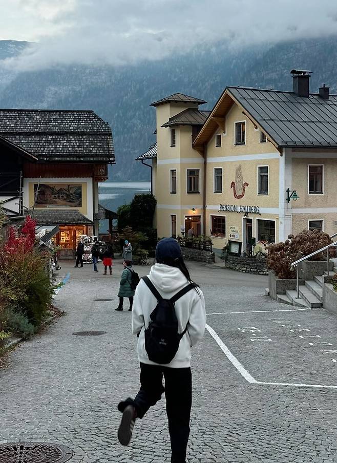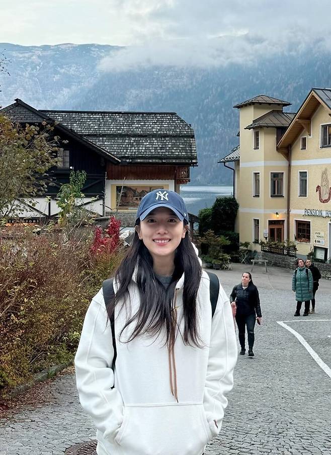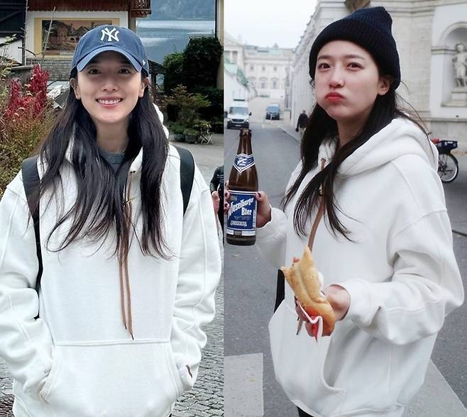 배우 표예진이 오스트리아에서 대학생 같은 후드 풀오버 캐주얼룩으로 여행을 만끽했다.