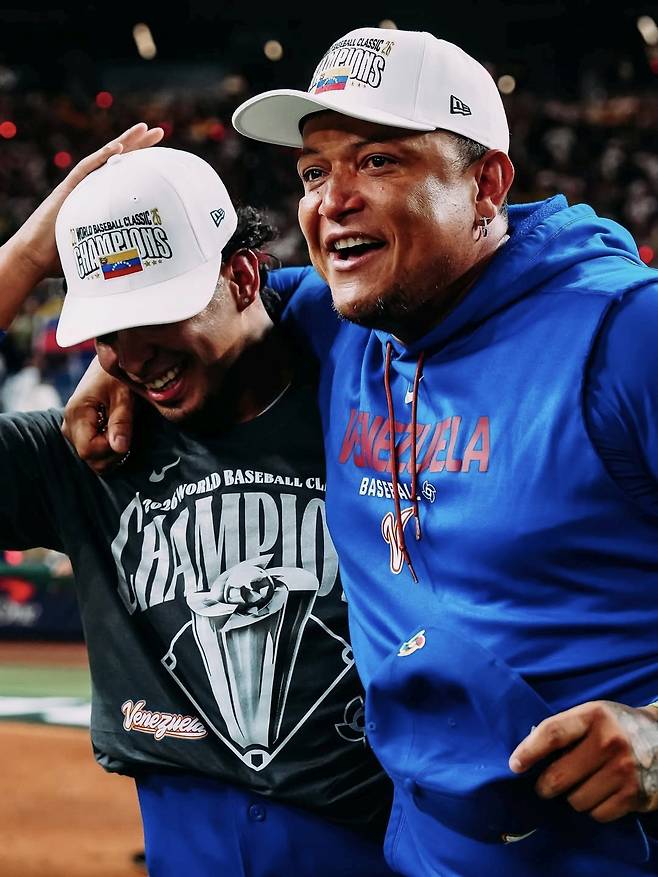 마이애미 론디포 파크의 전광판이 베네수엘라의 우승을 알린 순간, 중계 카메라는 마운드가 아닌 더그아웃의 한 남자를 비췄다. 베네수엘라 국가대표 유니폼을 입고 얼굴을 감싸 쥔 채 어깨를 들썩이며 울고 있는 사내, 베네수엘라 야구 그 자체인 ‘전설’ 미겔 카브레라였다. 디트로이트 타이거즈의 특별 보좌관으로 활동 중인 그는 이번 대회에 고국의 타격 코치로 전격 합류했다. 전설은 단순한 직함을 넘어 선수들의 멘토로서 유니폼을 벗지 않고 후배들과 함께 호흡하며, 조국의 첫 WBC 우승 앞에서 아이처럼 뜨거운 눈물을 쏟아냈다.