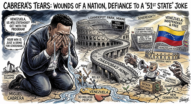 하지만 이 드라마틱한 우승 뒤엔 씁쓸한 뒷맛도 남았다. 도널드 트럼프 전 대통령은 SNS를 통해 베네수엘라를 향해 "STATEHOOD, #51, ANYONE?(51번째 주가 될 사람 없나?)"이라며 노골적인 조롱을 던졌다. 마두로 사후 미국의 영향력이 강해진 베네수엘라의 주권 상황을 비꼰 것이다. 그러나 베네수엘라 선수들은 이 '51번째 주'라는 비아냥을 실력으로 잠재웠다. ‘전설’ 카브레라의 진두지휘 아래 '라틴 아메리카의 심장' 마이애미에서 미국 팀을 꺾으며, 자신들이 미국의 부속물이 아닌 당당한 독립 국가의 영웅임을 증명해 냈기 때문이다.