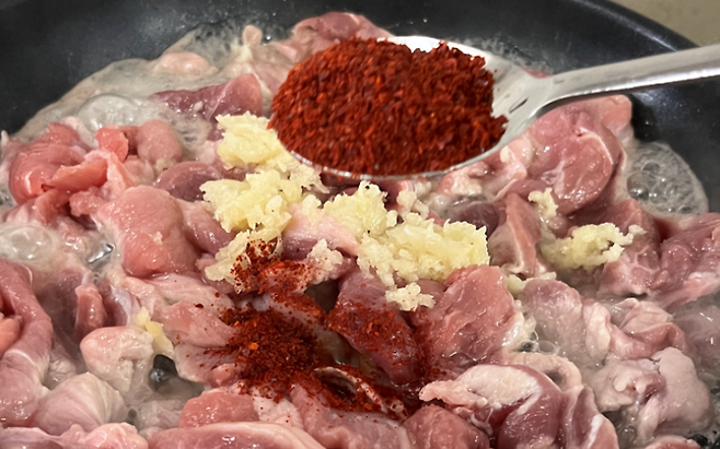 양파를 갈아 제육볶음 양념장에 넣으면 설탕 없이도 감칠맛과 단맛이 살아납니다. 이때 갈은 양파의 수분이 많으니, 양념장의 간장이나 다른 액체 양념 양을 조금 줄이면 맛의 균형이 맞습니다. 마늘, 생강과 함께 넣으면 잡내가 사라지고, 고기의 풍미가 더 살아납니다.