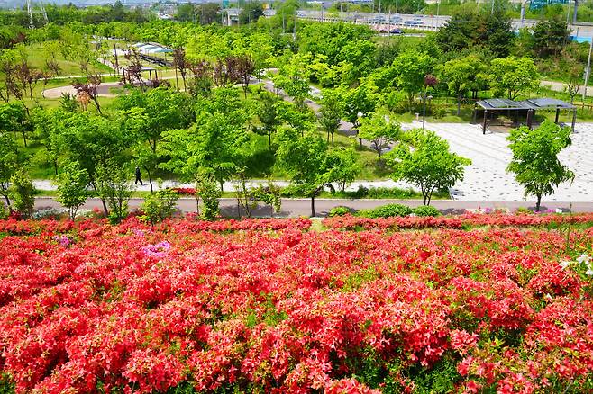 그중에서도 2호 구역의 철쭉동산은 봄마다 붉은 장관을 연출한다. 약 10,000㎡(3,000평)의 넓은 부지에 조성된 이곳은 영산홍 10만 본이 터널처럼 피어 있어, 그야말로 꽃의 파도가 넘실거린다.