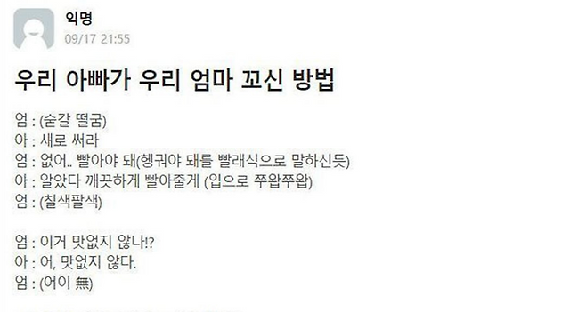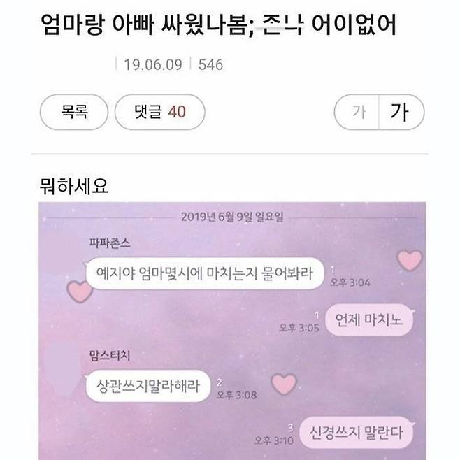엄마랑 아빠 싸웠나봄;; 어이없어
