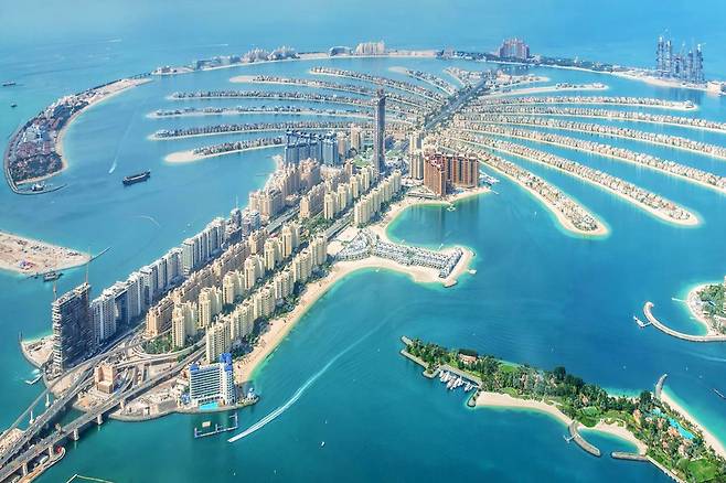 두바이에서는 인공 섬을 빼놓을 수 없습니다. 두바이 최초의 인공섬 팜 주메이라는 두바이의 대표적인 명소입니다.