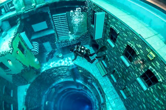 수심 26m 수영장도 깊은 곳이지만 이와 비교도 안 될 정도로 어마어마한 수심을 자랑하는 곳이 있습니다. 바로 두바이에 있는 수영장인데요.