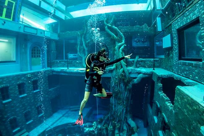 이곳은 기네스북에 문을 열자마자 세계에서 가장 깊은 수영장으로 이름을 올렸습니다.