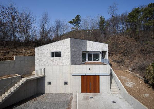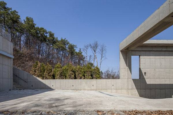 파주 수수재는 대지 모양이 이색적이다. 남동쪽으로는 전면 도로를 접하고, 대지 뒤쪽은 산골짜기 방향으로 삼각형 모양이다. 대지 뒤로 갈수록 높아지는 지형이다. 서쪽에서 동쪽으로도 경사가 있어 서쪽 경계에는 옹벽으로 토목 공사를 진행해야 했다.
