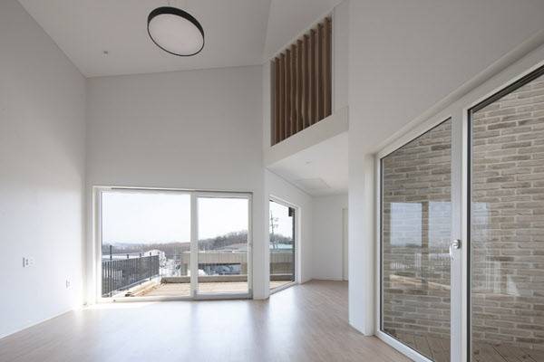 건축주는 가장 큰 고민거리로 ‘보안’ 문제를 꼽았다. 건축주는 직업이 영화감독이어서 외부 일정이 잦다. 아무래도 집에는 아내 혼자 있는 일이 많다보니 보안에 더욱 신경쓸 수밖에 없는 상황이었다. 우리는 ‘프라이버시(사생활)’와 ‘보안’ 그리고 ‘힐링’이라는 세 가지를 모두 충족할 수 있도록 집을 창고 위 공간인 2층에 배치했다. 이렇게 외부인 출입을 쉽게 살필 수 있는 환경을 조성해 보안 문제를 해결하고 높은 곳에서만 볼 수 있는 주변의 아름다운 경관을 누리도록 해 힐링 요소도 충족했다.