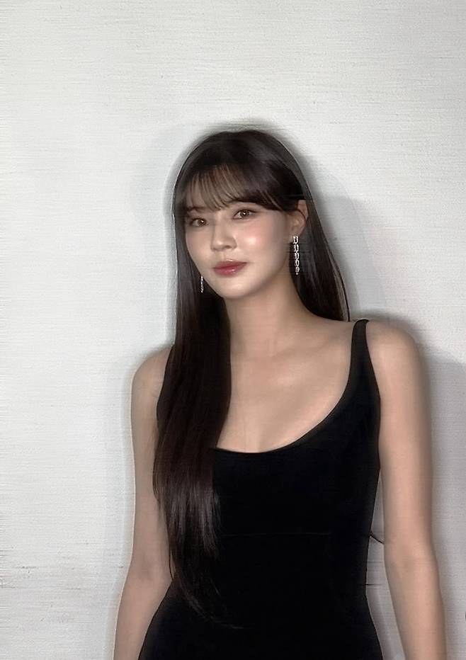 슬림한 실루엣의 원숄더 벨벳 드레스를 선택해 우아한 보디라인을 강조했으며, 과한 액세서리 없이 롱 드롭 이어링과 링으로 포인트를 줘 절제된 고급미를 더했습니다.