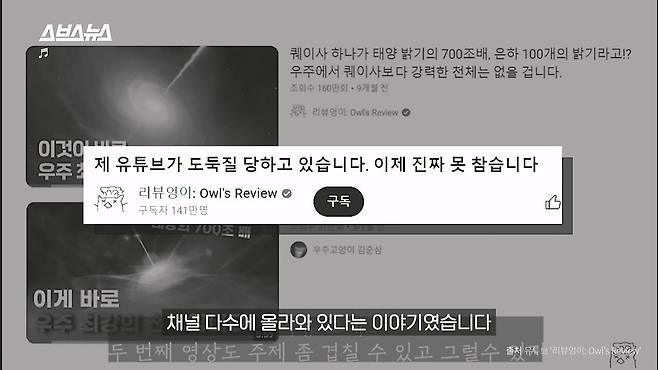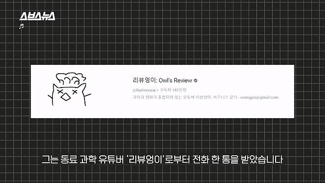 그는 동료 과학 유튜버 ‘리뷰엉이’로부터
