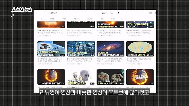 자신 영상과 비슷한 내용의 채널들이
