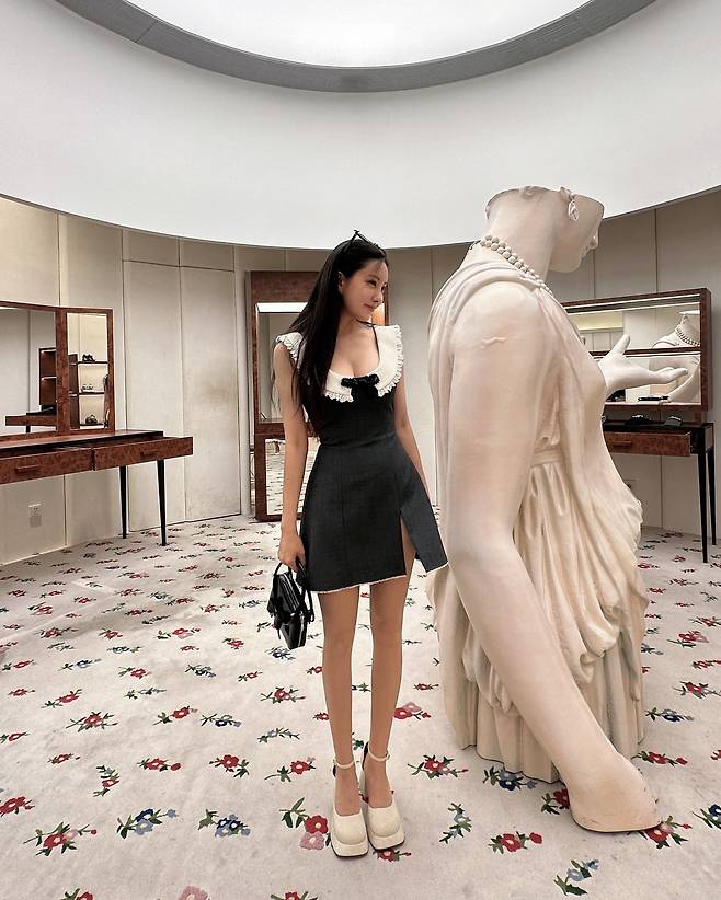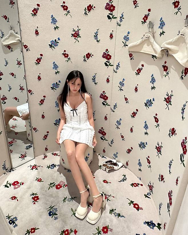 사진 속 효민은 귀여운 프릴 미니 원피스에 메리제인 구두를 코디해 러블리함을 뽐냈습니다.