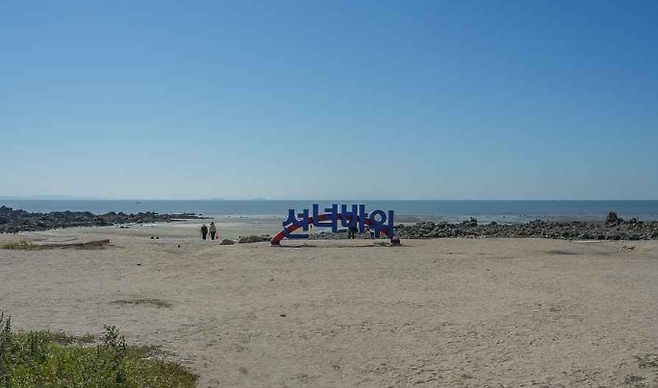 모래사장과 넓은 갯벌이 어우러진 조용한 바닷가