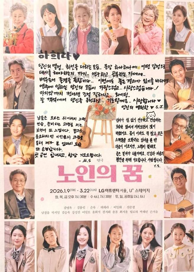 한편 하희라가 출연하는 '노인의 꿈'은 작은 미술학원을 운영하는 '봄희'가 자신의 영정사진을 직접 그리고 싶다며 찾아온 힙한 할머니 '춘애'를 만나며 시작되는 이야기로 오는 3월 22일까지 LG아트센터 서울 U+ 스테이지에서 공개된다.