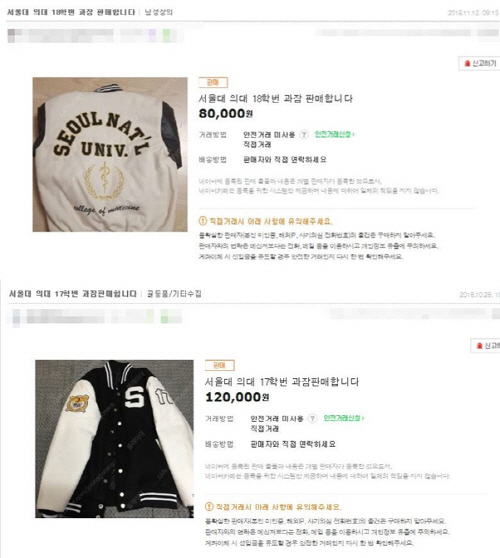 온라인 중고 물품 거래 사이트에는 서울대, 연세대, 고려대 등 소위 명문대로 불리는 학교의 과잠이 4만~5만원 선에 거래되고 있다. 의대, 치대, 한의대 등 최상위 학과의 과잠 역시 높은 가격에 거래됐다.