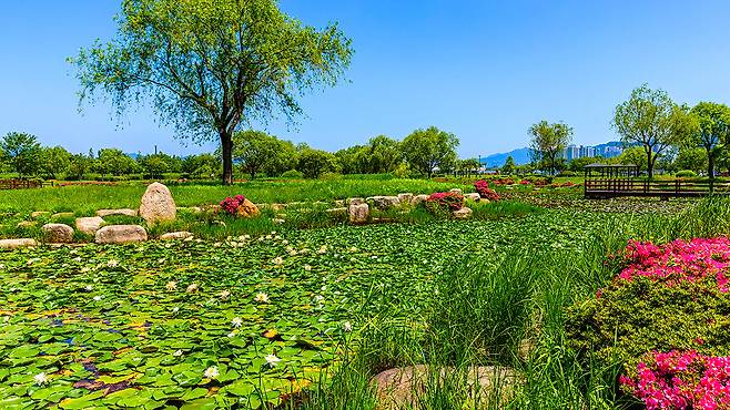 바람 따라 살랑이는 물결 위에 떠 있는 듯한 꽃들은 보는 이의 마음마저 가볍게 만들어준다. 그 차분한 아름다움은 단순한 관람을 넘어, 하나의 명상처럼 다가온다.