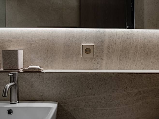 샤워부스 옆, 욕실장 위, 아래에 LED 간접등을 배치하여 은은한 분위기를 연출하게 해주었답니다. 고급 호텔 화장실 같은 느낌이 나서 씻을 때마다 항상 호캉스 온 느낌이 나네요 ㅎㅎ