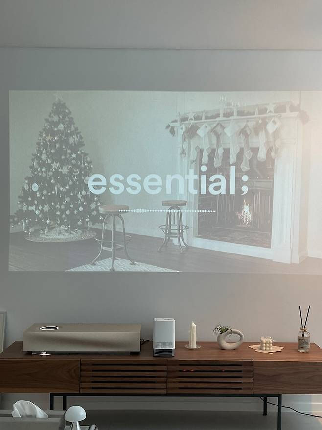 Naim의 블루투스 스피커와 빔 프로젝터가 합쳐지니 볼 때마다 눈과 귀가 호강한답니다.ㅎㅎ 퇴근 후에 와이프와 소파에 앉아서 빔으로 드라마를 보며 맥주 한 잔 할 때가 하루 중 제일 행복한 시간인 것 같습니다.