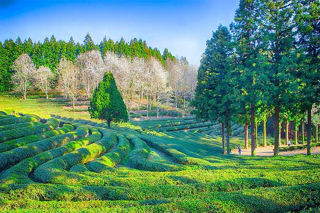 특히 4월과 5월, 연둣빛 새 찻잎이 올라오는 계절에는 녹차밭이 가장 화려하게 빛난다.