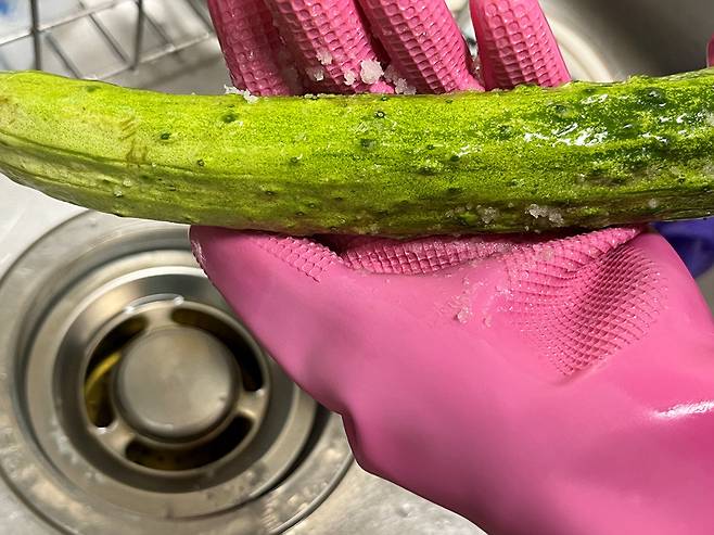 오이는 굵은소금으로 박박 문질러서 겉에 묻은 이물질을 제거해 주세요. 피클 재료는 오이, 무를 준비했습니다. 이 외에도 양배추, 당근 등 원하시는 재료로 만들면 됩니다.
