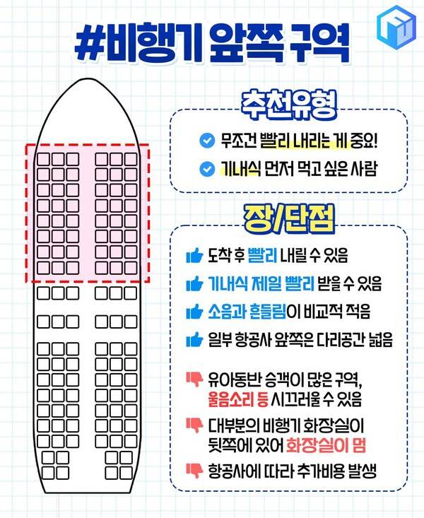 오늘 여행톡톡에서는 해외여행 전 알아두면 좋은 비행기 좌석별 장점과 단점을 소개해드리려고 합니다. 또 개인 취향 및 유형별로 앉으면 좋은 비행기 좌석까지 추천해드렸으니 비행기 좌석을 고민하는 분들에게 많은 도움이 되길 바랍니다.
