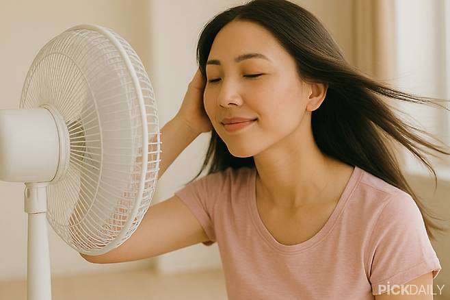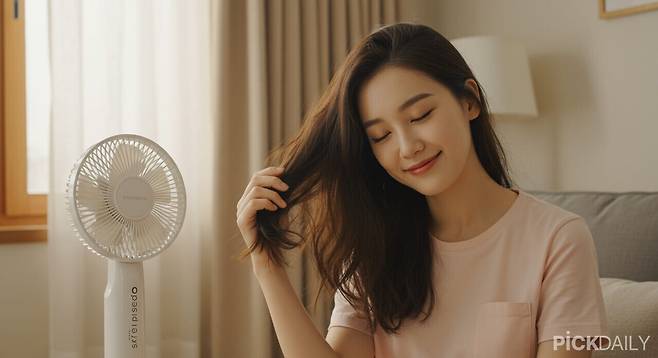 선풍기를 얼굴이나 옆에서 쐬면 머리 전체에 고르게 바람이 퍼지지 않아 말리는 데 오래 걸린다. 바람 방향을 머리보다 약간 위쪽에서 아래 방향으로 흐르게 조절하면 정수리에서 아래쪽으로 열기와 습기가 함께 빠져나가 말리는 속도가 훨씬 빨라진다. 선풍기를 너무 가까이 두면 바람이 한곳에 집중돼 오히려 말리는 속도가 느려질 수 있으니, 거리도 적당히 두는 게 좋다.