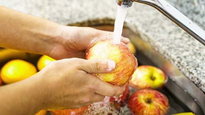 미국 농무부(USDA)의 조사에서는 사과, 상추, 토마토를 흐르는 물로 문질러 세척했을 때 농약 제거율이 80% 이상으로 나타났다.