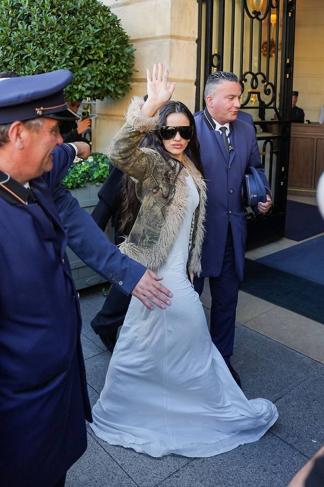 로살리아 는 화이트 드레스에 낡은 시어링 재킷을 매치해 자신만의 시그니처인 그런지 글래머를 한 번 더 확실히 증명했습니다. 무심하게 걸친 듯하지만 완벽히 계산된 스타일, 이것이 진정한 스타의 여유죠. 흐트러짐과 완벽함이 공존하는 룩과 이질적인 요소를 하나로 엮는 능력은 어쩌면 지금 패션 신에서 가장 힘이 강력한 주문일지도 모릅니다.