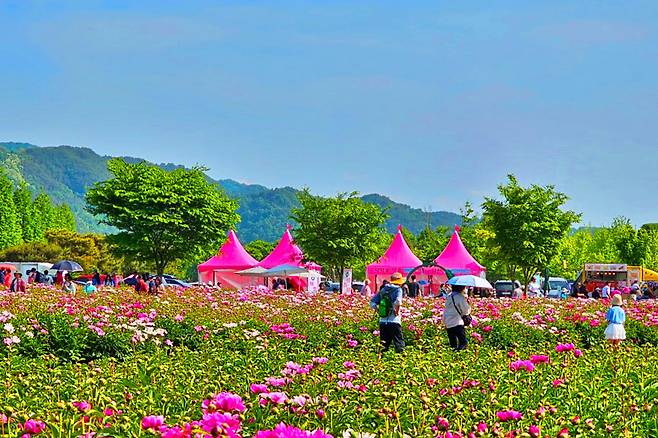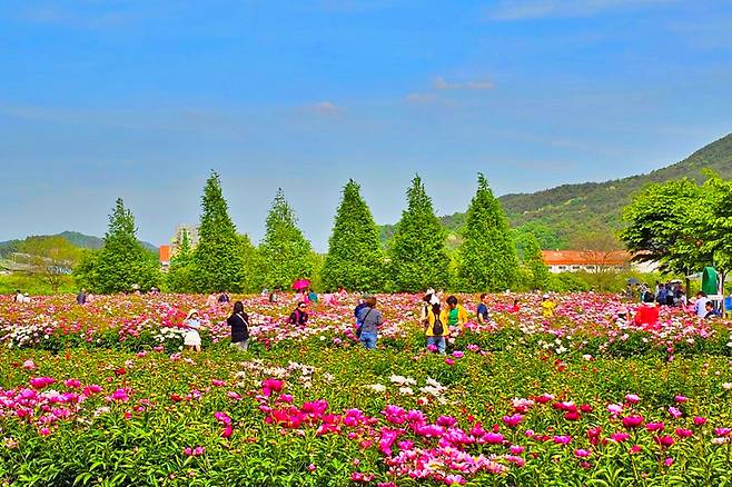 작약꽃의 꽃말은 ‘수줍음’이지만 공원에 피어난 수만 송이 작약은 오히려 당당하게 자신의 아름다움을 뽐낸다.