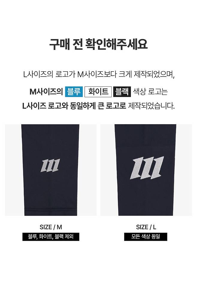 M사이즈의 블루, 화이트, 블랙 색상의 로고는 L사이즈와 같은 큰 로고로 제작되었습니다!