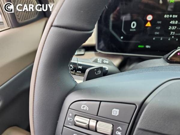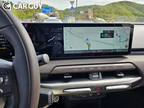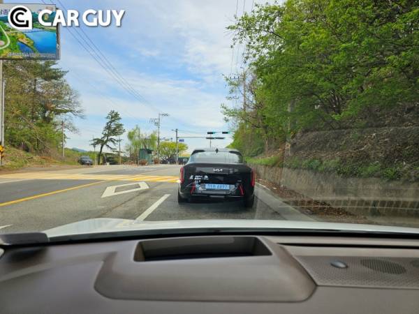EV9과 EV3에 선적용된 컬럼식 기어에 달린 스타트 버튼을 눌러 시동을 걸고 시승에 나섰다. 최신 전기차답게 초반 가속이 미끄러지듯 부드럽다. 액셀에 살짝만 힘을 주어도 풍부한 힘이 느껴지며 편안한 가속감을 바로 느낄 수 있다.
