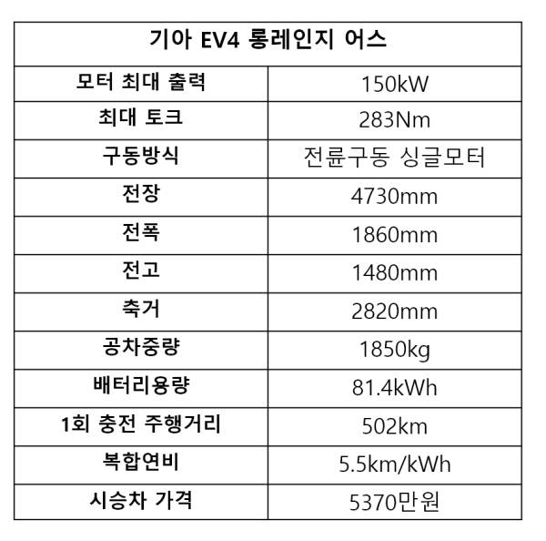 EV3를 언급한 이유는 EV4가 배터리부터 옵션, 가격 구성 등 상당히 유사한 스펙을 가지고 있어서다. EV3 시승도 상당히 만족했었던 만큼 EV4에 대한 기대감과 EV3와 어떤 점에서 차별화를 했을지 궁금증을 안고 시승에 나섰다.