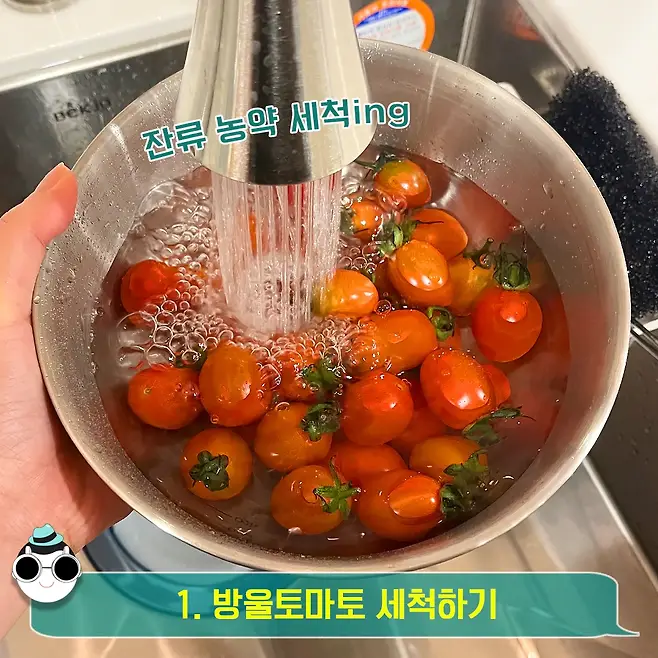 방울토마토를 씻어서 보관해라? 씻어서 보관하면 무르는 거 아닌가요?라고 생각할 수 있겠지만, 씻어서 잔류 농약을 세척해 주는 게 좋아요~