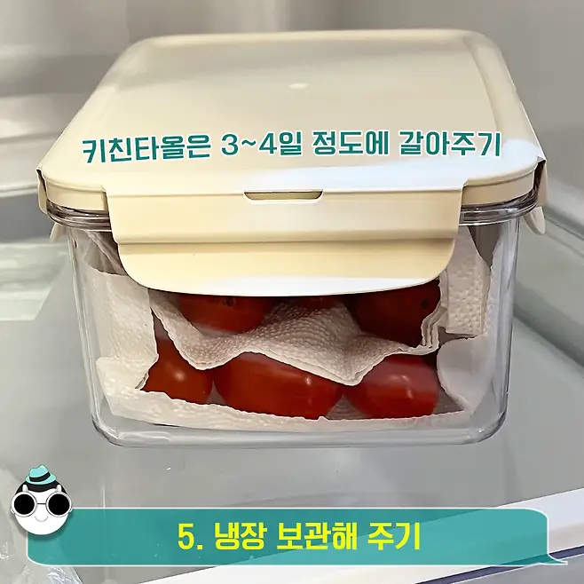 혹시나 방울토마토를 대량 구매해서 일주일 이후에도 먹을 것 같다고 하시는 분들은 키친타올을 3~4일 정도에 한 번씩 갈아줘보세요.