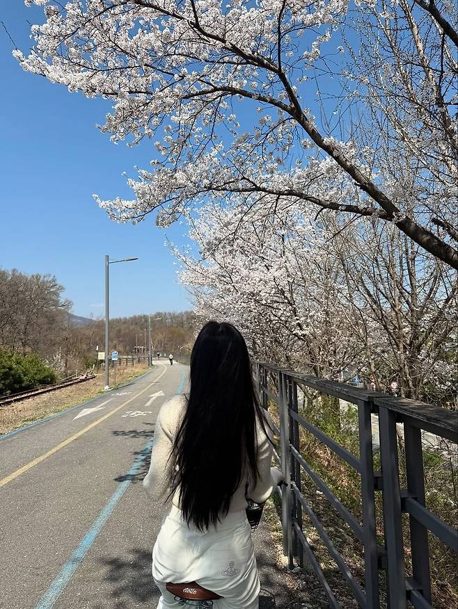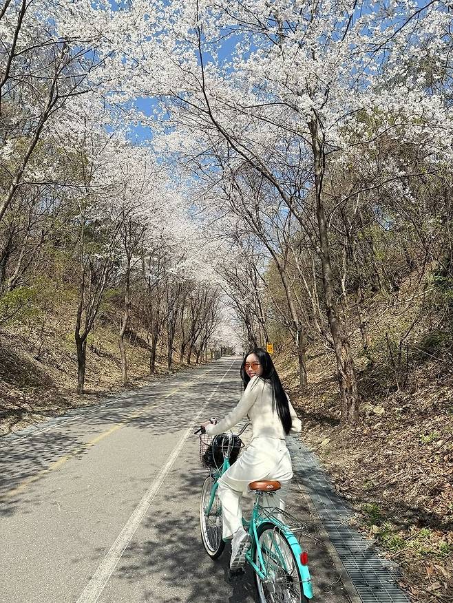 봄의 정점, 벚꽃이 만개한 길 위를 달리는 한 장의 사진. 달샤벳 출신 세리가 남양주의 라이딩 명소에서 보여준 자연친화적이고 스타일리시한 패션이 눈길을 사로잡는다. 따뜻한 햇살과 어우러진 그녀의 편안한 라이딩룩은 봄 시즌 데일리룩의 좋은 예가 되어준다.