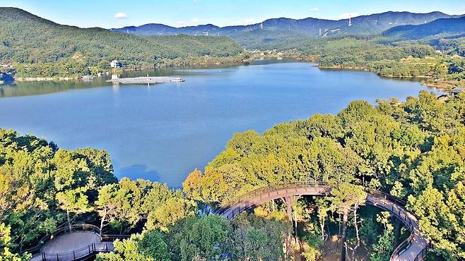 경기 안성시 금광면에는 안성에서 인기 있는 산책·전망 명소인 '금광호수 하늘전망대'가 자리해 있다.
