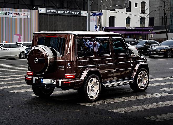 자동차 커뮤니티 남차카페 게시판에는 최근 메르세데스-벤츠 G클래스 차량 한 대가 도로를 주행 중인 모습이 공개됐다. 서울 강남구 청담동에서 포착된 차량이다.