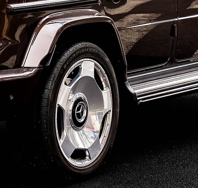 이뿐만이 아니다. 휠도 눈길을 끈다. 옵션으로 제공하는 메르세데스-벤츠 휠이지만, 인근 건물이 환하게 비칠 정도로 광택을 냈다.