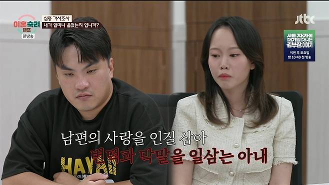10월 23일 방송된 JTBC <이혼숙려캠프>에서는 16기 '애증 부부'의 이야기가 그려졌다.