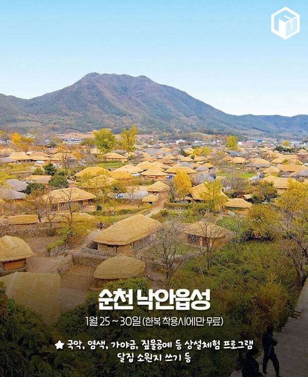 순천 낙안읍성과 뿌리깊은나무박물관도 1월 28일부터 30일까지 한복을 입은 관람객을 대상으로 무료 입장 혜택을 제공합니다.