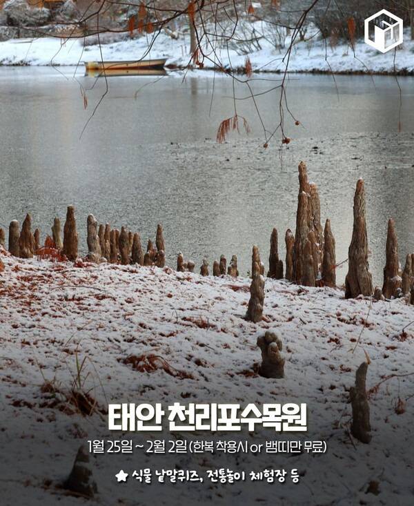 충남 태안 천리포수목원은 1월 25일부터 2월 2일까지 무료 입장 이벤트를 실시합니다. 단, 뱀띠 탐방객과 한복을 입고 방문한 관람객만이 무료입장 혜택을 누릴 수 있습니다.