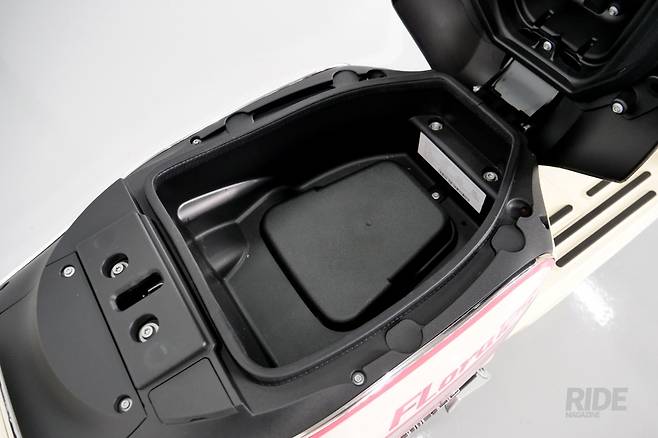 하지만 예쁜 형태 때문에 수납 용량이 희생되어 풀페이스나 오픈페이스 헬멧 수납은 어렵고 하프페이스(반모) 헬멧 정도만 수납이 가능하다. 그리도 리어 캐리어가 기본 사양이어서 별도로 탑케이스를 장착해 해결할 수 있다.