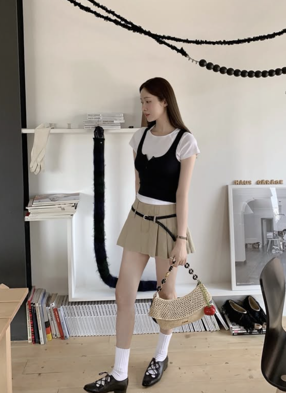 특히 차정원이 보여준 것처럼 발목 위로 올라오는 화이트 양말과 함께 연출하면 소녀스러운 감성과 도시적인 세련미를 동시에 표현할 수 있다.
